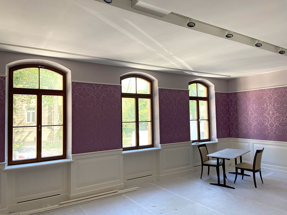 Für die Herstellung neuer bzw. die Rekonstruktion historischer Stuckprofile verfügen wir über eigene Werkstätten. Eigens hergestellte Schablonen und Zugschlitten gewährleisten hochwertige plastische Schmuckelemente und die einwandfreie Ergänzung von Verlustzonen.