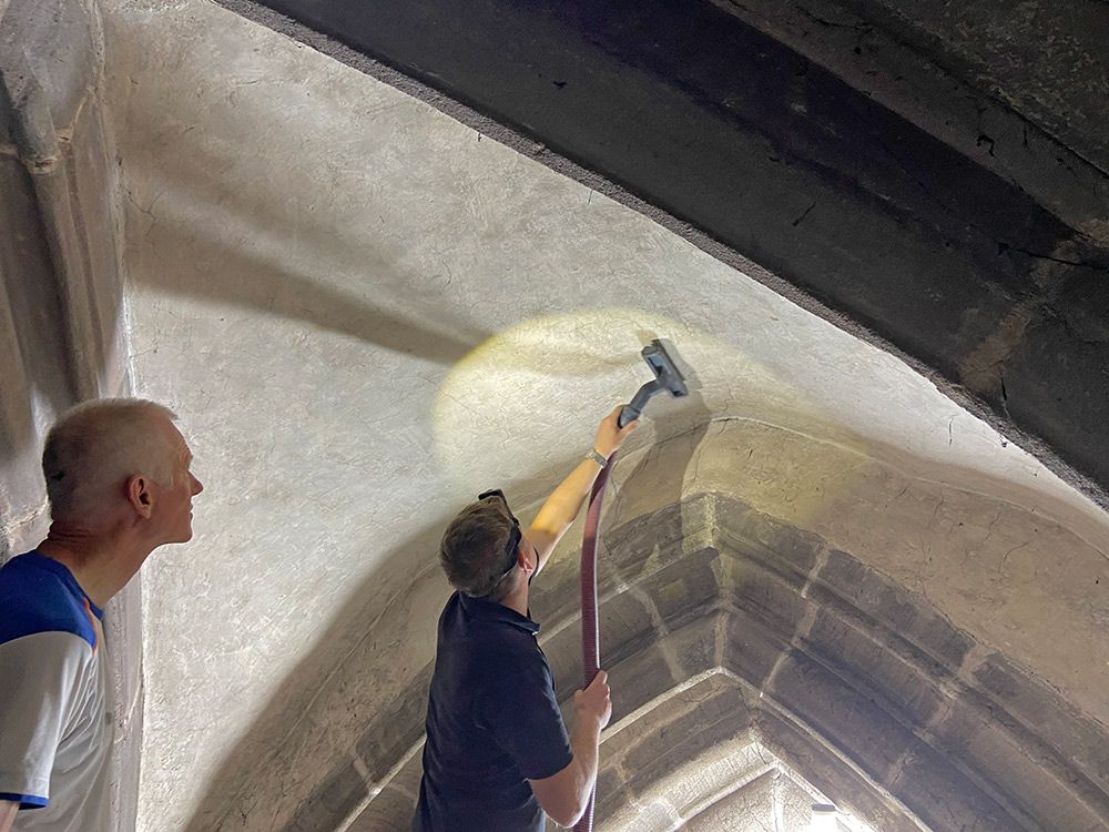 So schöpft unser Team aus Kirchenmalern und Restauratoren aus langjähriger Erfahrung hinsichtlich historischer Anstrichtechniken in Kalk-, Silikat-, Leimfarben- oder Kaseintechnik. Die fachkundige Anwendung originaler Techniken und Materialien bewahrt bauzeitliche Charakteristika im Erscheinungsbild historischer Raumschalen.