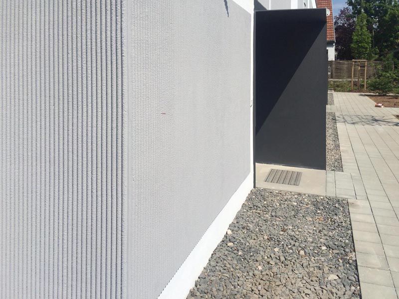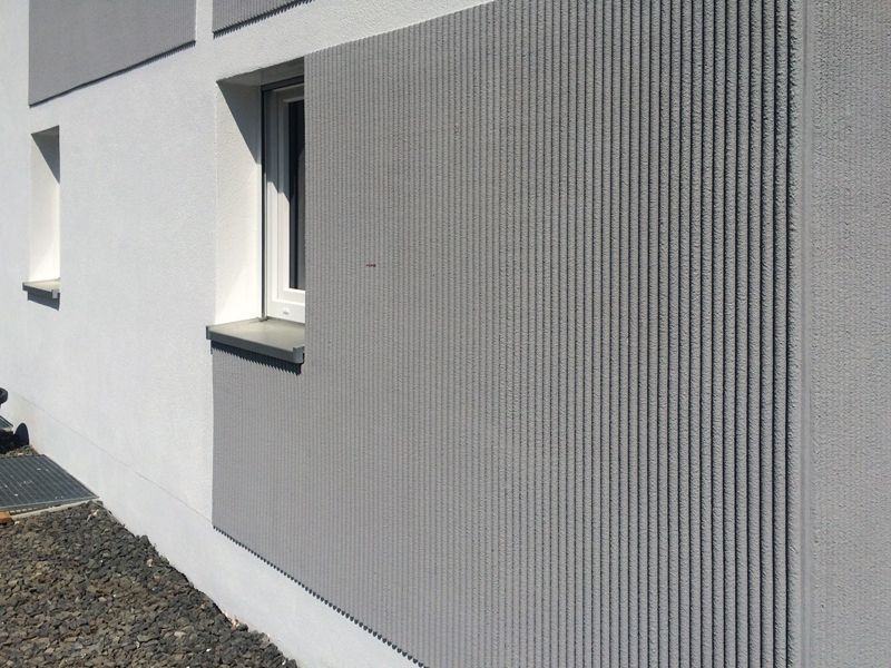 Die Fassade des Neubaus im Kastanienweg in Erlangen sollte in Kammzugtechnik gestaltet werden. Die schöne Fassadentechnik stammt aus Österreich und findet nun erstmals in Deutschland Einsatz.