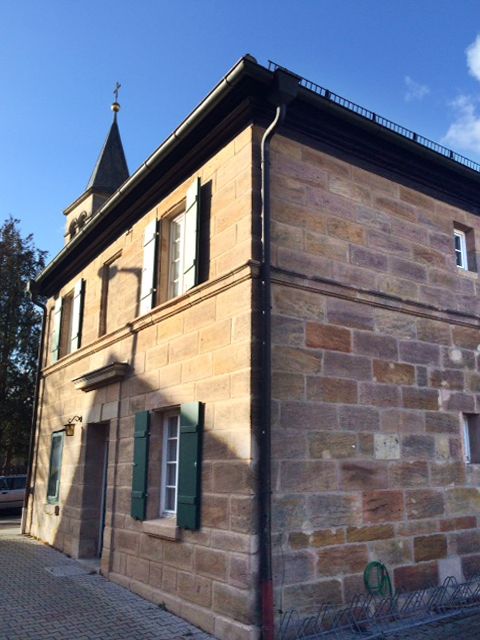 Schadhafter Sockelputz wurde entfernt und mit KEIM Porosan-Trass-Zementputz sowie KEIM NHL-Kalkputz erneuert.