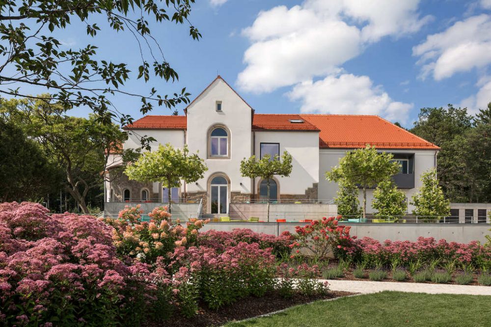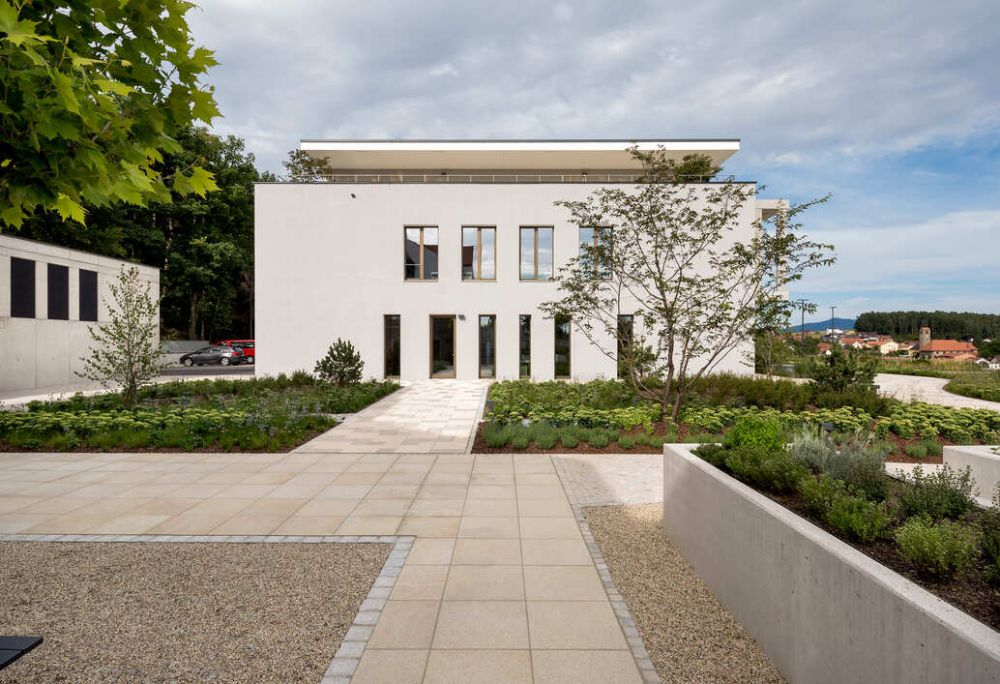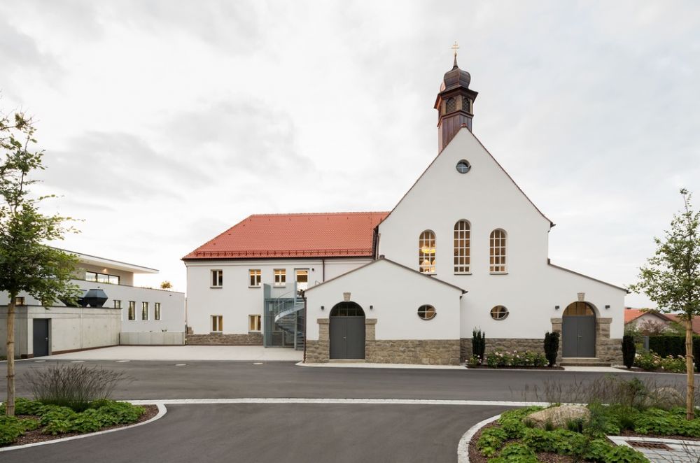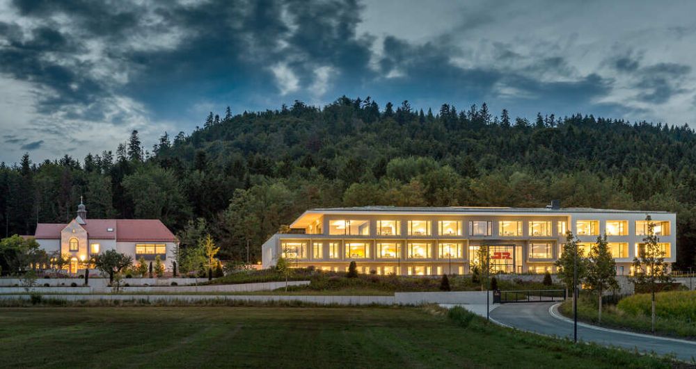 In und um die alte Kloster-Anlage am Waldrand unterhalb des Buchbergs wurde ein großer Neubau für eine Unternehmensverwaltung gebaut. Das Gebäude des ehemaligen Klosters sollte erhalten bleiben und in den Neubau integriert werden.