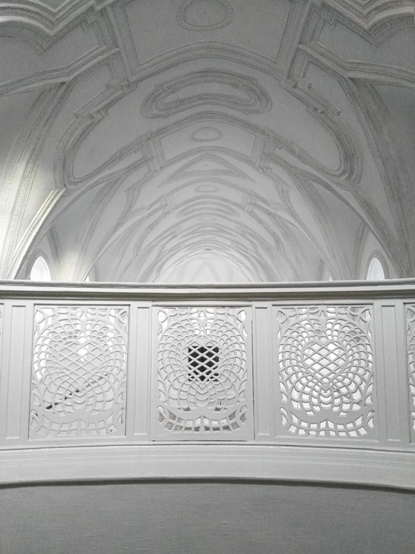 Säulen mit Basis, Sockel, Architrav und Emporenbrüstung - Schleierbretter und Brüstungsabdeckung