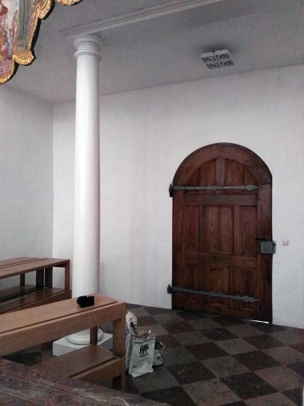 Füllungstür mit Stock und Wandvertäfelung Empore