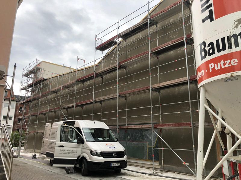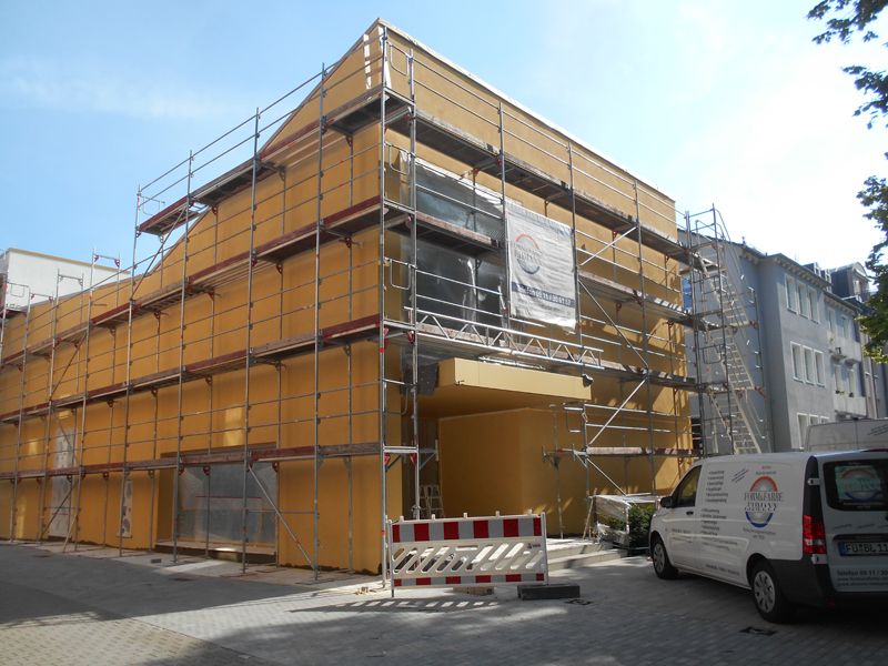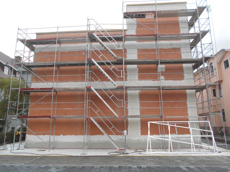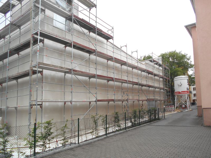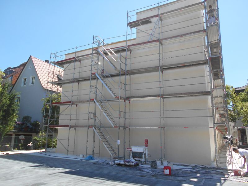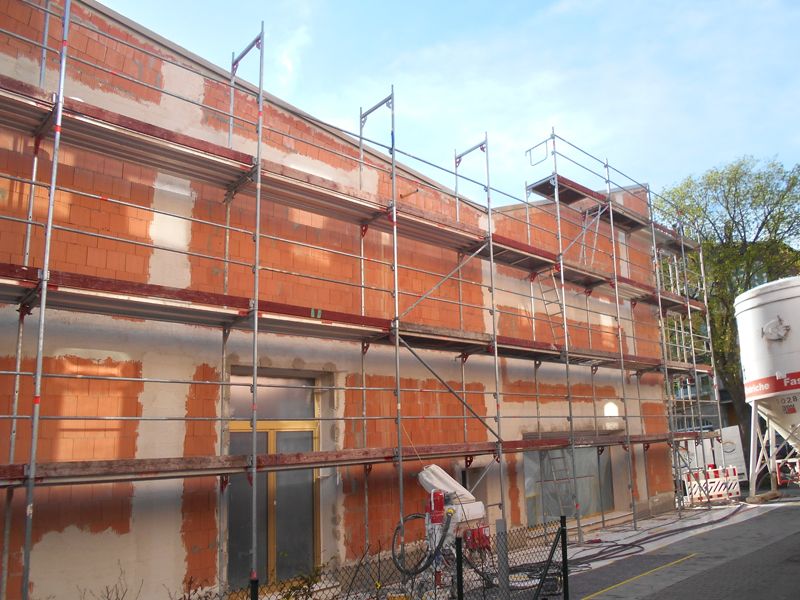 An der Fassade folgte auf den mineralischen Grundputz der Einbau einer Armierung. Der Oberputz wurde als Filzputz ausgeführt.