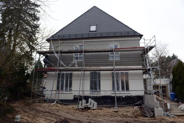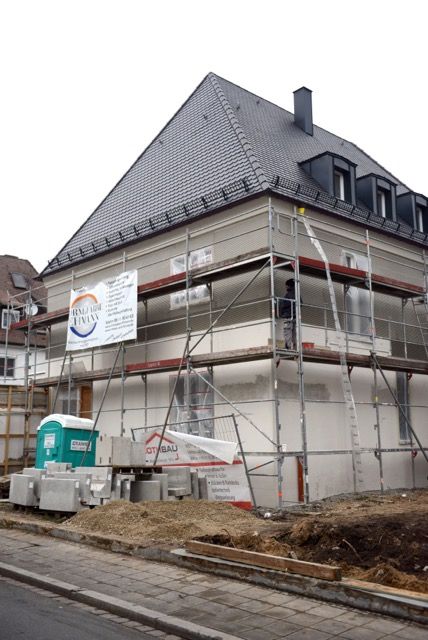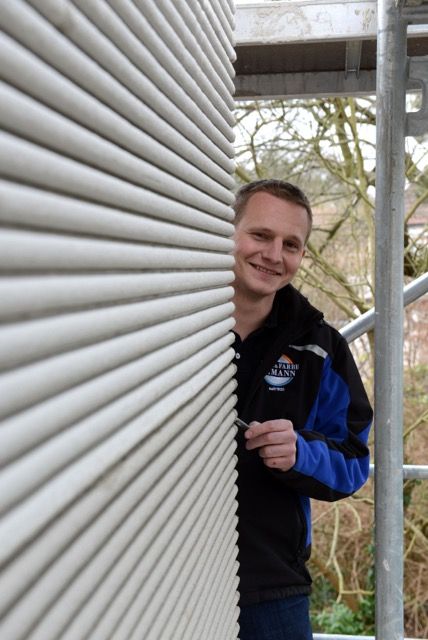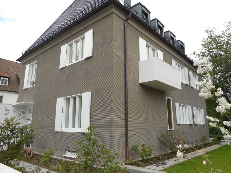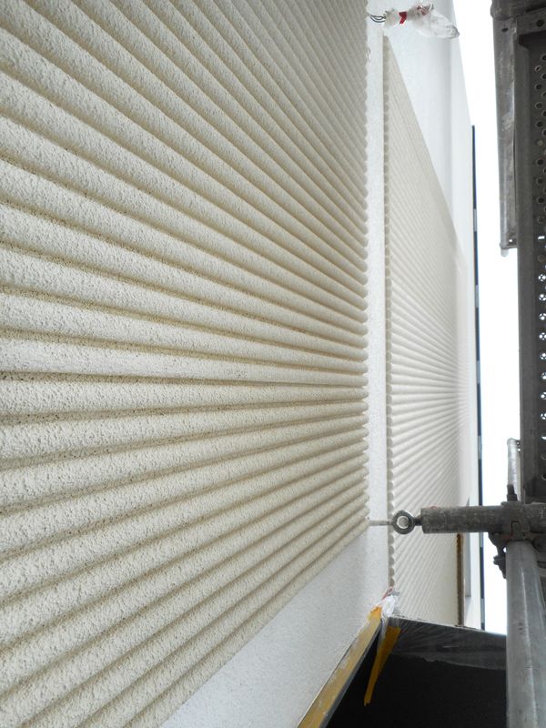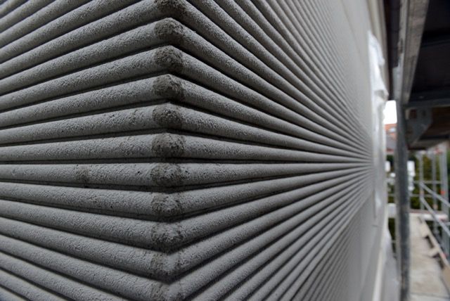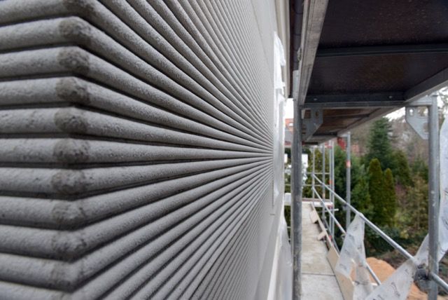 Die Fassade des Einfamilienhauses in der Novalisstraße in Nürnberg sollte in Kammzugtechnik gestaltet werden. Form [&] Farbe Ehmann übernahm die Ausführung.