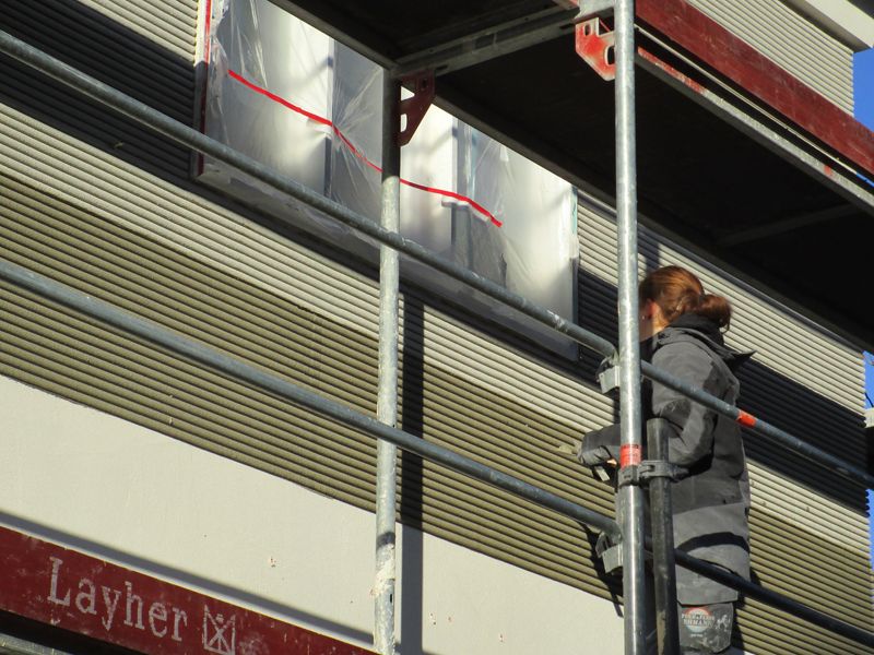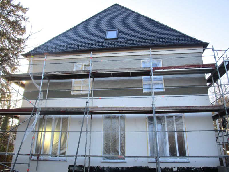 Der Grundanstrich erfolgte mit KEIM Contact plus als Schlämmanstrich. Zwischen- und Endanstrich bestanden aus KEIM Granital, anschließend folgte ein Lasurauftrag mit KEIM Restauro.