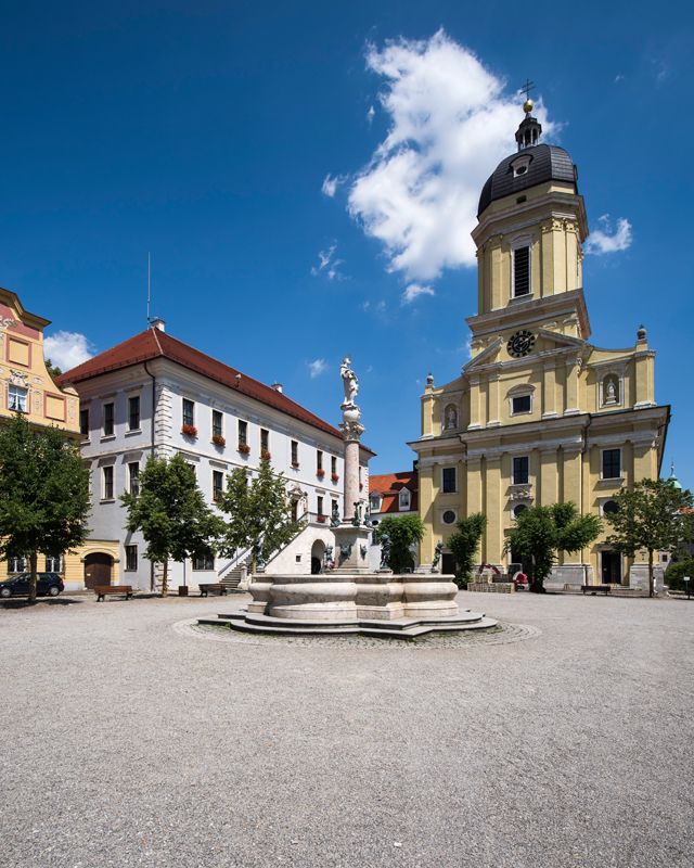 Der Renaissancebau des Rathauses in Neuburg an der Donau wurde 1603 bis 1609 erbaut.