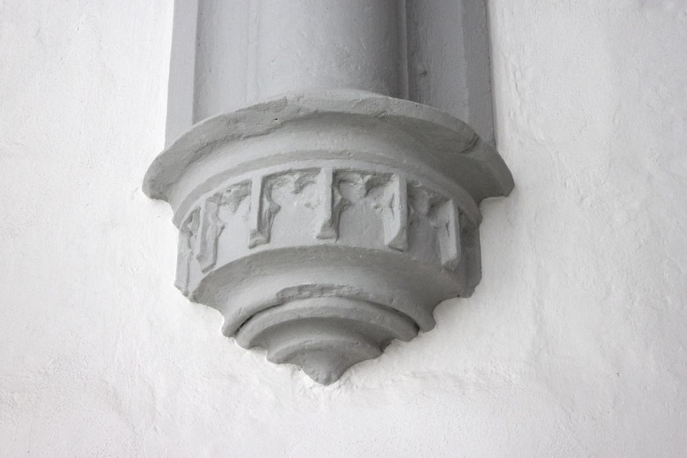 Die monochrom weiße Architekturfassung von Langhaus, Seitenschiffen und Chorbogen beinhaltete die Reintegration von Wandmalereien. Die stuckierte Bandrippendekoration der Decken und des Gewölbes, die Wandabschlussgesimse, die Fenstermaßwerke, die Säulen und der Chorbogen wurden monochrom weiß gefasst.