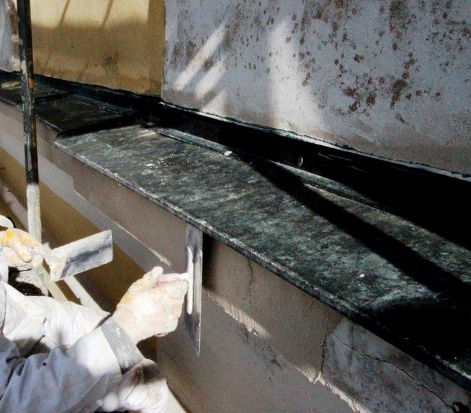 An stark bewitterten Flächen wurde mit KEIM Lotexan hydrophobiert.