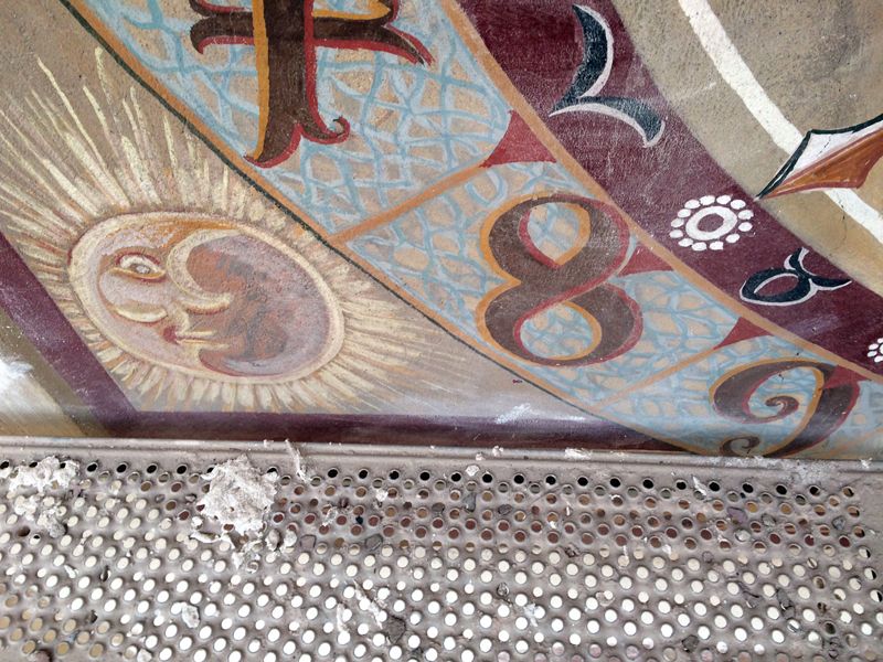 Analog zum Bestand wurde die Beschriftung in goldgelbem Farbton mit Sol-Silikatfarbe aufgemalt.