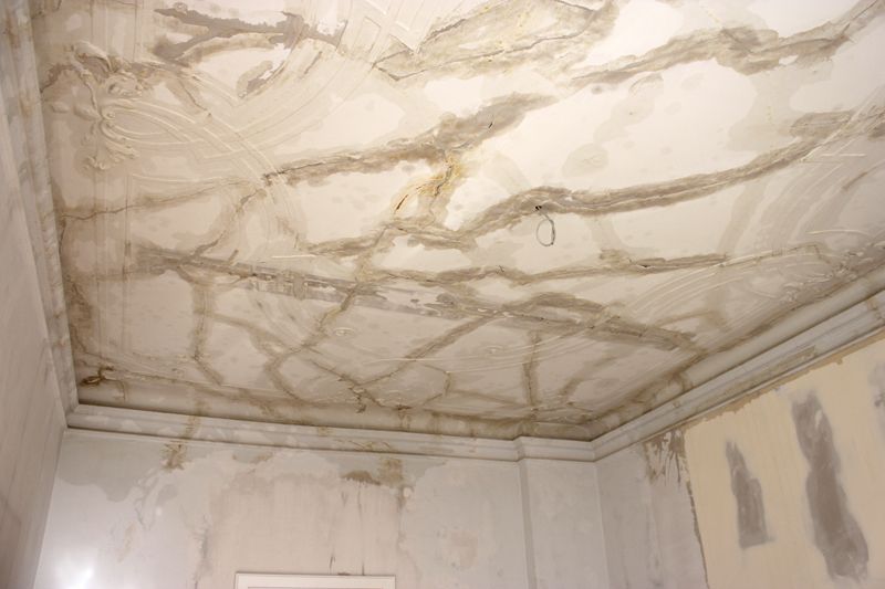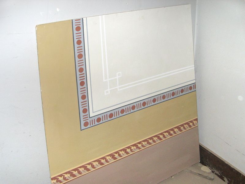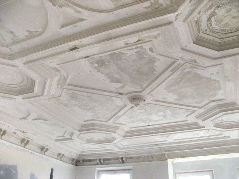 Risse wurden gesäubert und durch Einspritzen und Eindrücken von Stuckputzmörtel und Kalkglätte kraftschlüssig verschlossen. In glatten Wand- und Deckenbereichen mit starkem Rissbild wurde ein reversibles, überstreichbares Glasfaservlies aufgebracht, das in Leim eingebettet wurde.