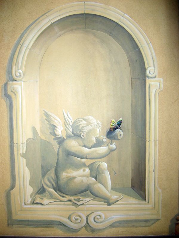 Alle Wandflächen wurden auf Hohlstellen und lose Putzpartien überprüft. Historische Putzflächen wurden erhalten und gefestigt.