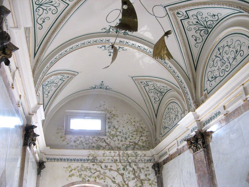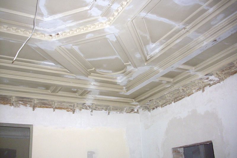 Viele Räume des Gebäudes zeichnen sich durch reich gestaltete Stuckdecken aus wie zierliche Jugendstildecken, streng gegliederte Kassettendecken, Gesimse und Reliefs, die im Laufe der Jahre mehrmals überstrichen und beschädigt wurden. Die Farbschichten wurden bis auf die tragende Schicht zurückgearbeitet. Die Stuckdecken wurden nachgearbeitet bzw. reprofiliert. Fehlende Stuckgesimse und -leisten wurden wiederhergestellt.