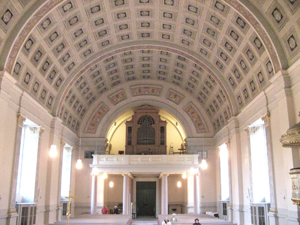 Die Grundsteinlegung des klassizistischen Saalbaues der St. Ludwigskirche erfolgte 1834.