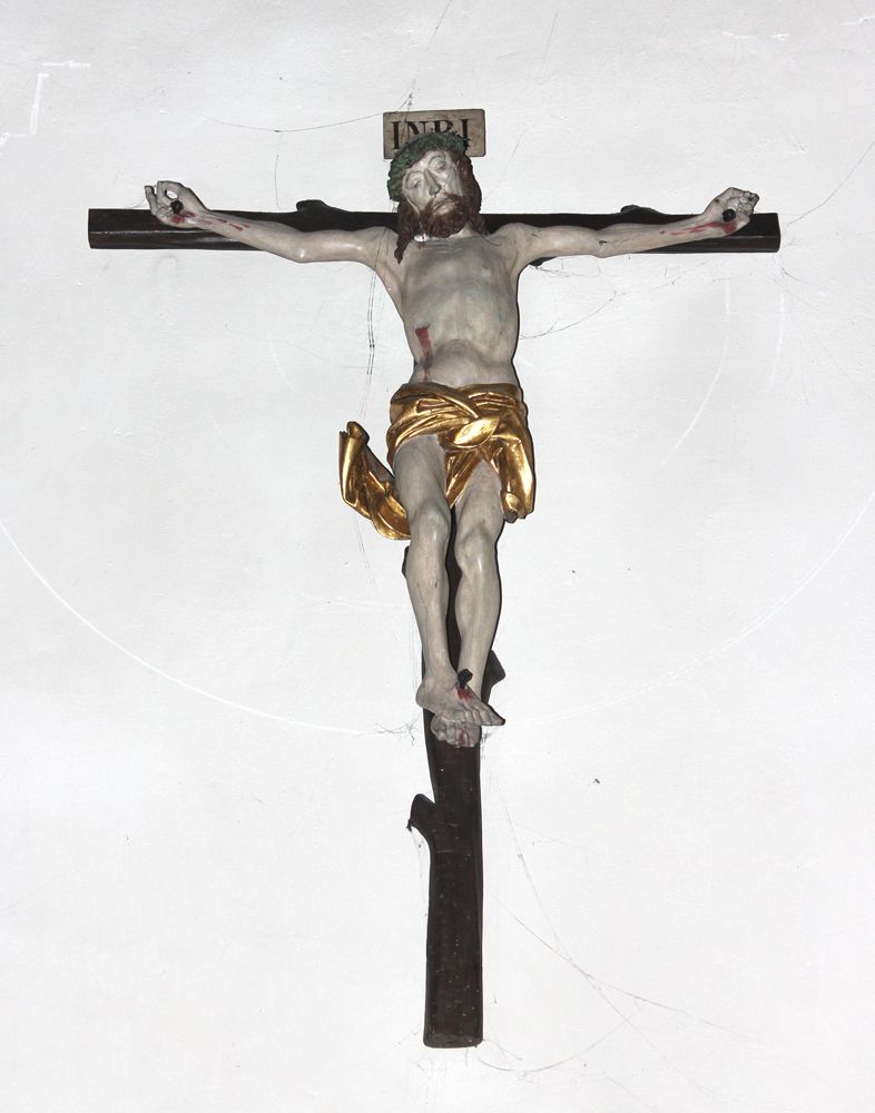 Fehlbereiche wurden mit Kreidekitt ausgekittet. Größere Kittungen und kleinere Verlustzonen wurden mit einer Mischung aus händisch angemachter Holzergänzungsmasse vorgenommen.