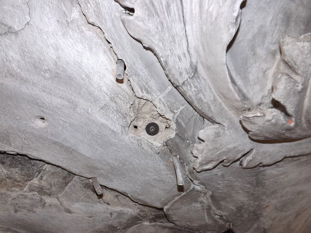 Stark ausladender Stuck wurde über konische Öffnungen mit Edelstahlschrauben des Typs A2 befestigt. Die Schrauben wurden analog der originalen Verankerungen mit armierten Grob- und Feinstuckmörteln vertieft eingebaut. Auch Kombinationen von Verankerung und Injektion kamen zum Einsatz.