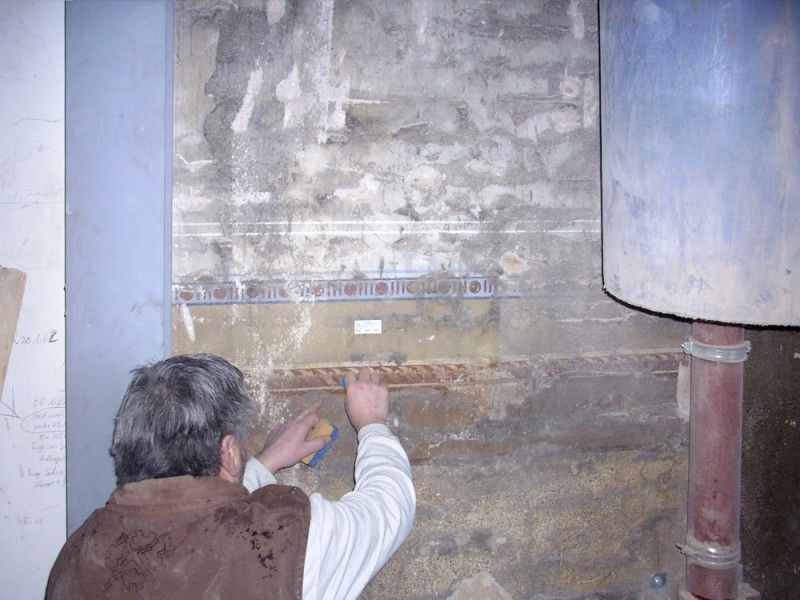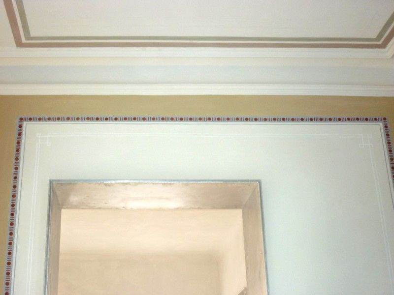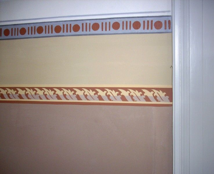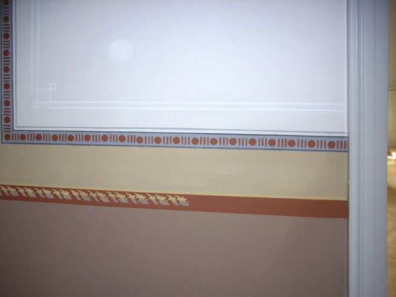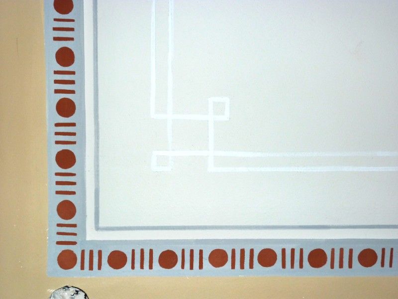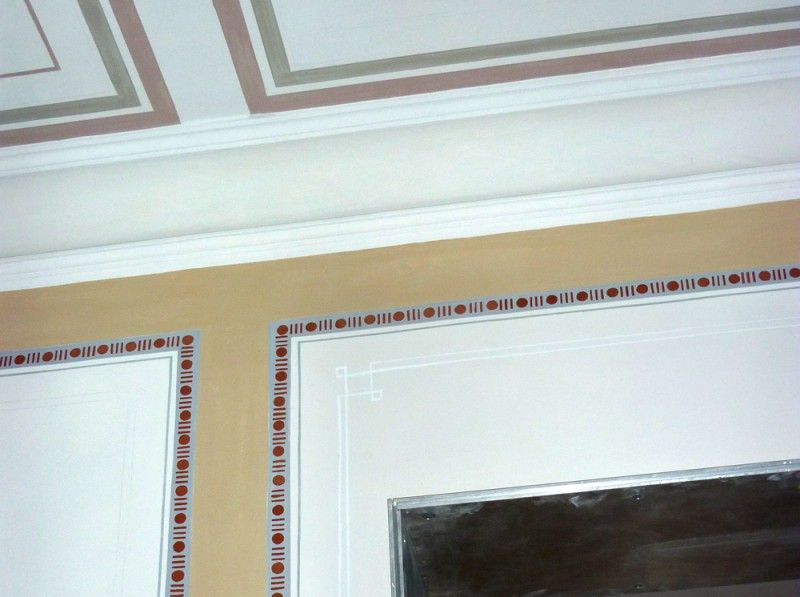 Auch die Bänderung als Begleiter im Wand- und Deckenbereich wurde nach vorhandenem Farbbefund rekonstruiert.