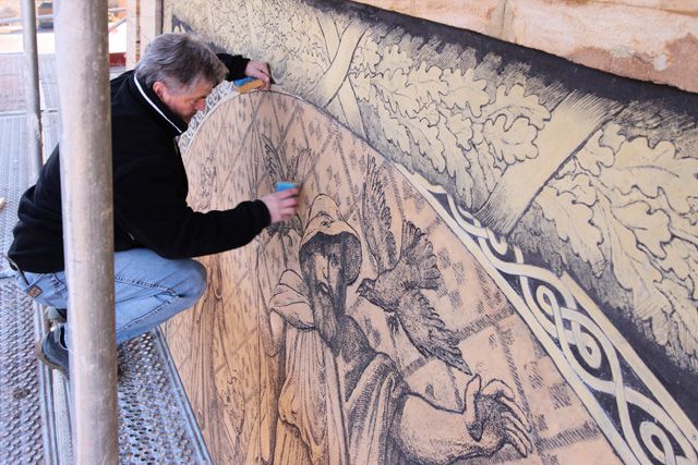 Restaurierung des Sgraffitos an der Fassade der Villa Wahnfried