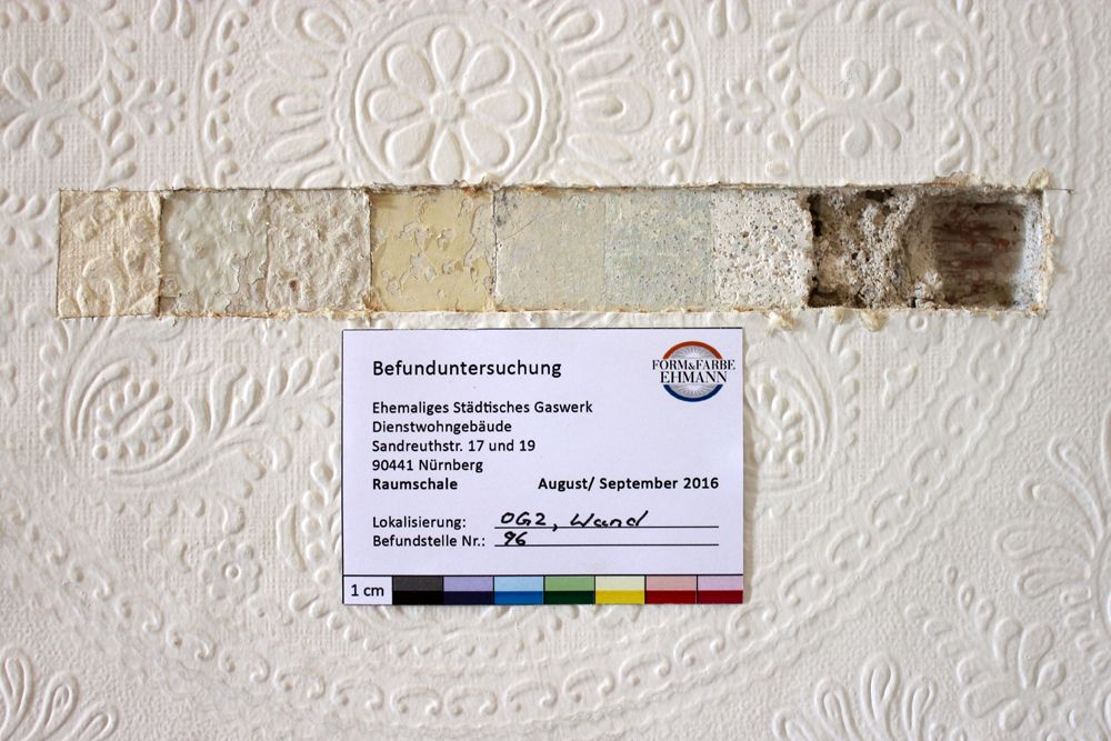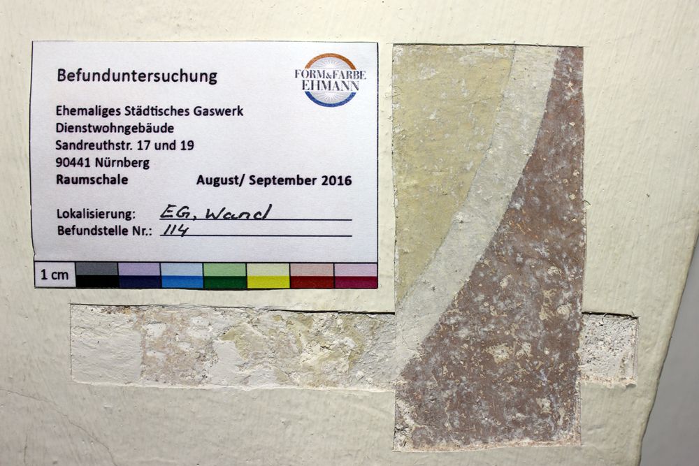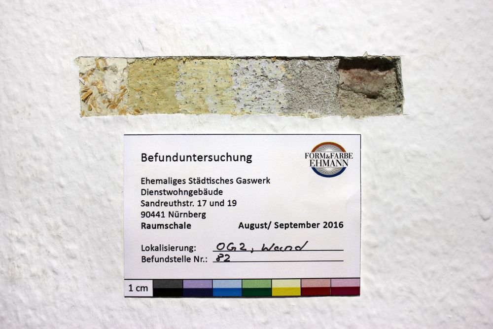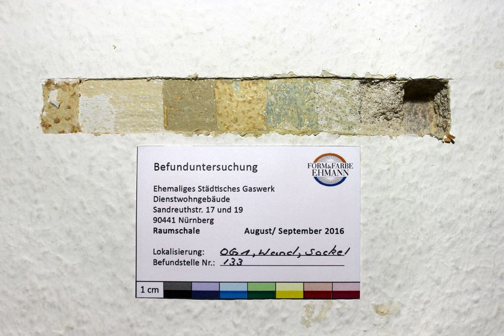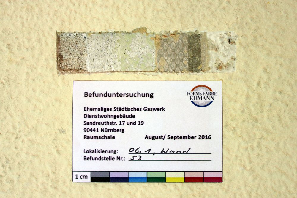 Als Grundlage für eine fundierte Konzeptfindung der künftigen Sanierungs- und Umbaumaßnahmen der ehemaligen Dienstwohngebäude in der Sandreuthstr. 17 und 19 in Nürnberg sollte eine sorgfältige Befunduntersuchung an der Raumschale durchgeführt werden. Untersucht werden sollten Gänge und Wohnungen von Erdgeschoss sowie[nbsp]Obergeschoss 1 und[nbsp]2, die beiden Treppenhäuser[nbsp]und das Dachgeschoss des Gebäudekomplexes. Der Bestand der Kellerräume sollte dokumentiert werden.