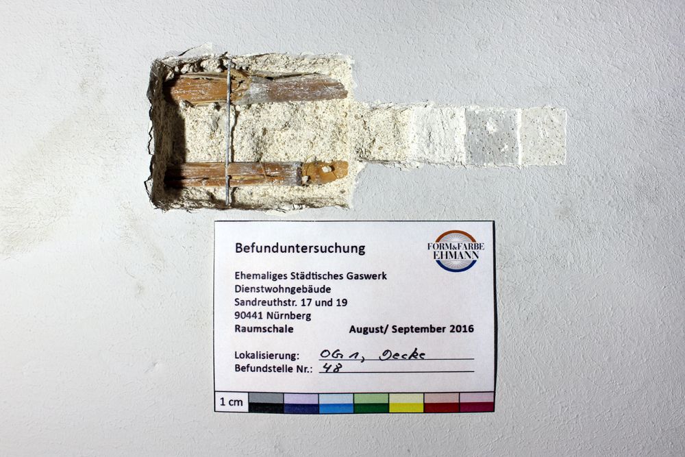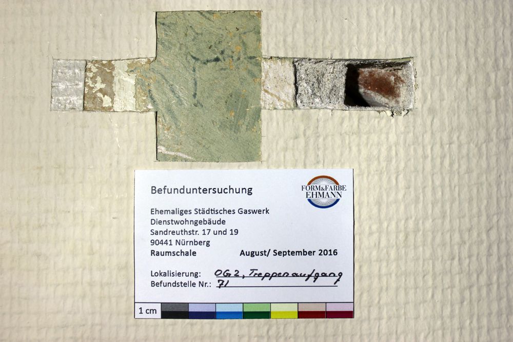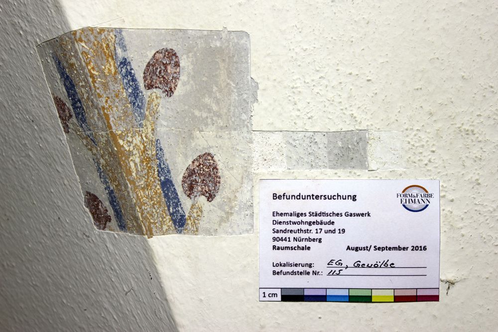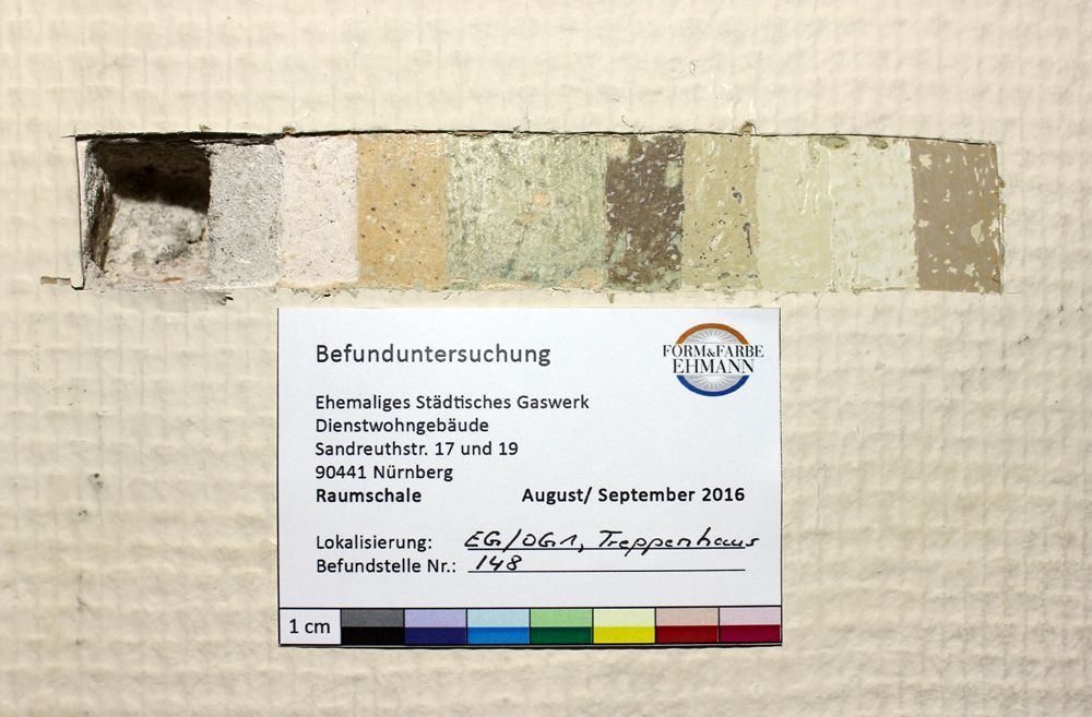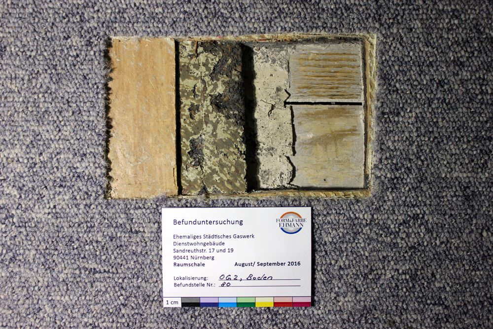 Als Grundlage für eine fundierte Konzeptfindung der künftigen Sanierungs- und Umbaumaßnahmen der ehemaligen Dienstwohngebäude in der Sandreuthstr. 17 und 19 in Nürnberg sollte eine sorgfältige Befunduntersuchung an der Raumschale durchgeführt werden. Untersucht werden sollten Gänge und Wohnungen von Erdgeschoss sowie[nbsp]Obergeschoss 1 und[nbsp]2, die beiden Treppenhäuser[nbsp]und das Dachgeschoss des Gebäudekomplexes. Der Bestand der Kellerräume sollte dokumentiert werden.