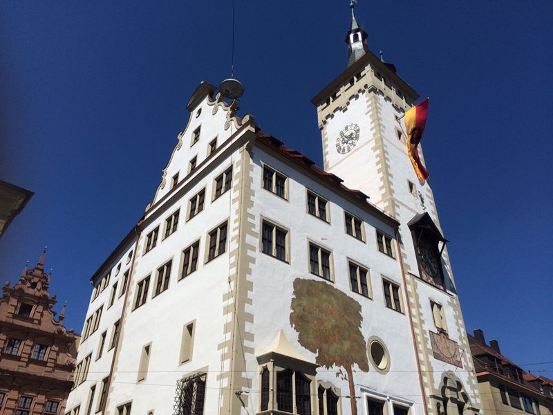 Sanierung der Fassade des Rathauses Grafeneckart in Würzburg - Musterfläche Malerei