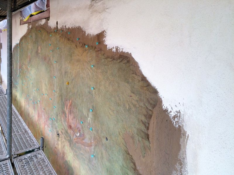 Im Rahmen eines restauratorischen Musters sollten Methoden zur Putzsicherung getestet werden.