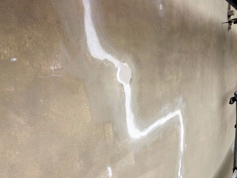 Oberflächliche Risssysteme wurden mit Wasser vorgenässt. Daraufhin wurde mineralische Schlämme einmassiert und die Flächen mit Schwämmen abgezogen.