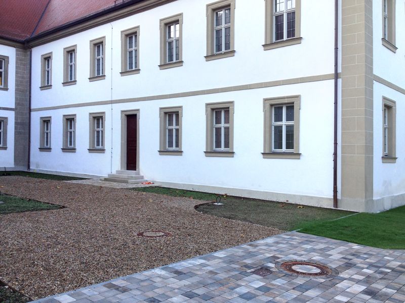 Die gesamte Außenfront des Schlosses Gremsdorf mit über 2000m2 Fassadenfläche sollte restauriert werden.