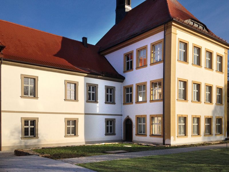 Im Durchschnitt waren sechs Stuckateure und Maler der Form [&] Farbe Ehmann GmbH[nbsp] im Einsatz, um das Denkmal in ein wahres Schmuckstück zu verwandeln.