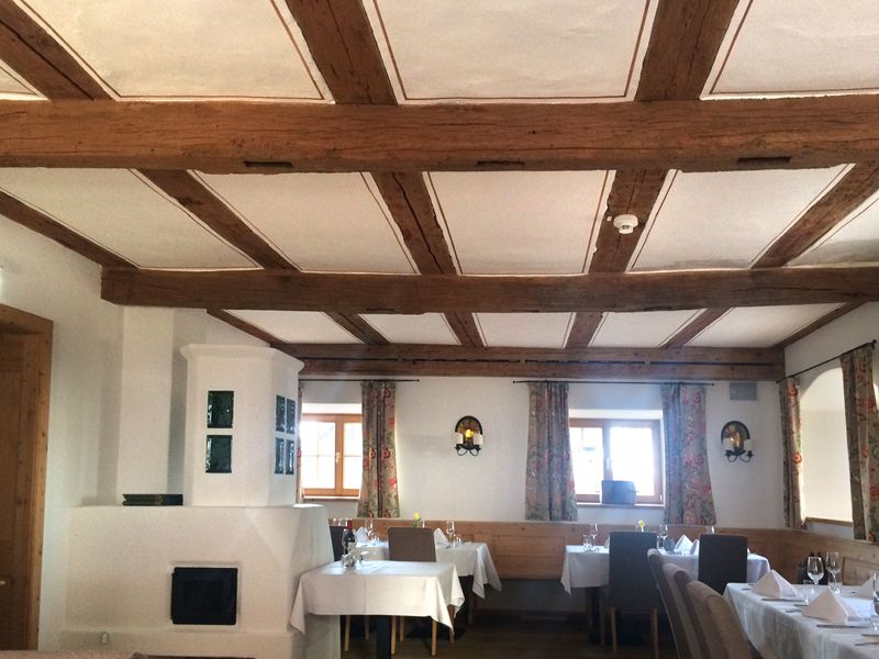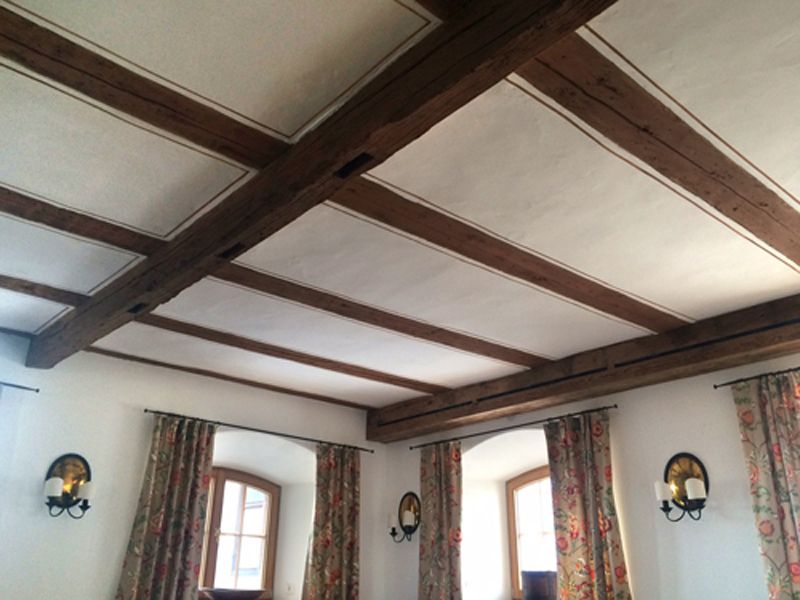 Wand- und Deckenflächen wurden mit KEIM Biosil und in historischer Kalklasurtechnik gestrichen.