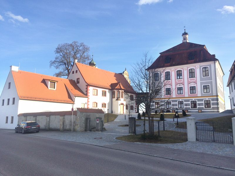 Das wunderschöne Schloss Leitheim, die ehemalige Sommerresidenz der Äbte des nahegelegenen Klosters Kaisheim, ist ein dreigeschossiges quadratisches Gebäude und liegt auf einer Anhöhe über dem Nordufer der Donau in der Nähe von Donauwörth.
