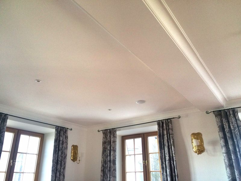 Die Deckenfläche erhielt eine vollflächige Gewebespachtelung aus hochreißfestem Glasfasergewebe. Über Heizungsrohren und bei Materialwechseln wurde ebenfalls Armierungsgewebe in den Unterputz eingebettet.