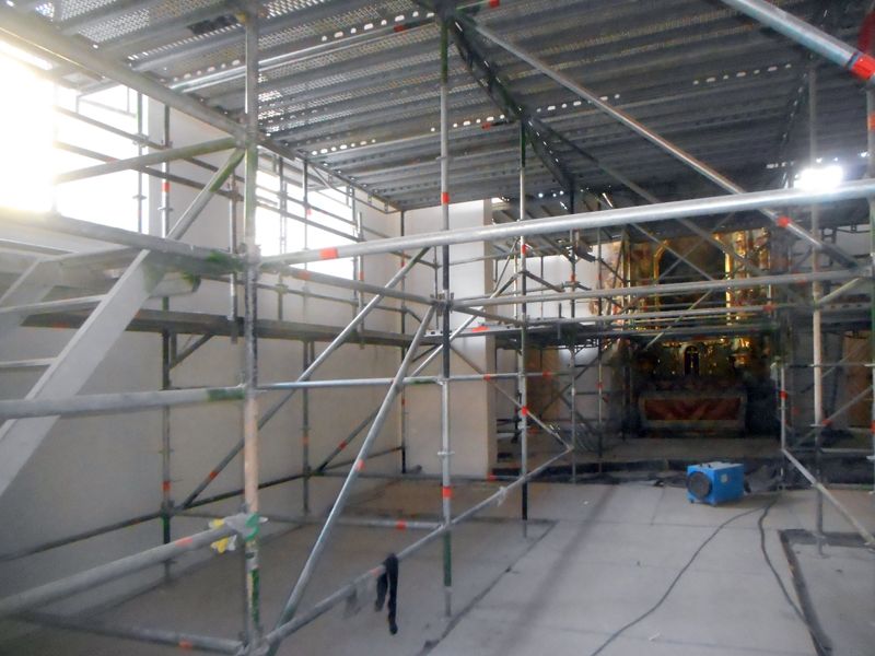 Die Altareinhausung wurde bauseits ausgeführt, allerdings wurden für die Malerarbeiten hier zusätzlich separate Schutzmaßnahmen vorgenommen.