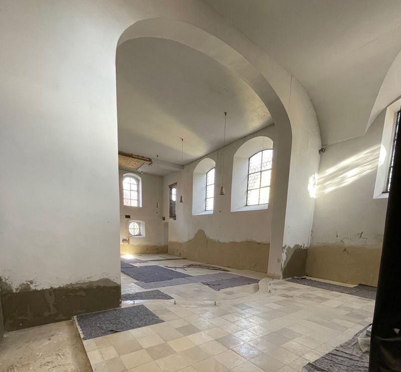 Fehlstellen wurden geschlossen, im Wand-Gewölbe-Anschluss wurden Kellenschnitte hergestellt und die Alt- und Neubestandsuntergründe wurden egalisiert.