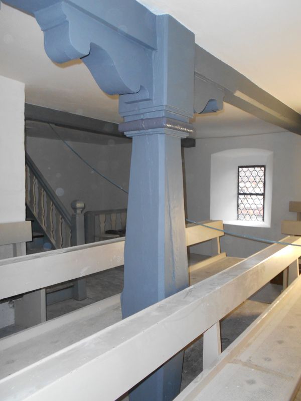 Die Ornamentfelder wurden retuschiert, die Brüstung mit sämtlichen Konstruktionsbalken der bisherigen Sichtfassung entsprechend neu gefasst.