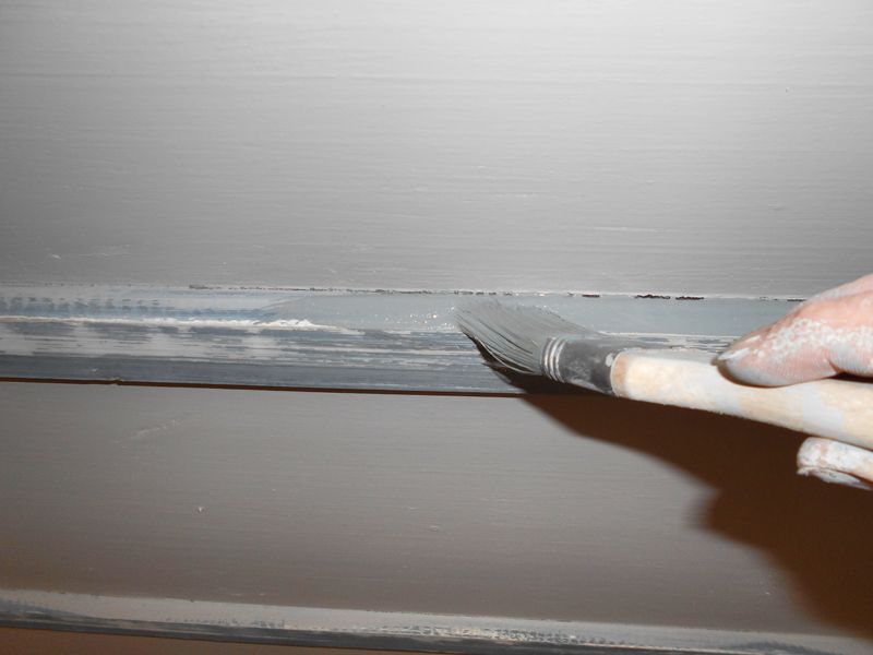 Die Oberflächen wurden angelaugt und gründlich abgewaschen, um einen tragfähigen Untergrund zu schaffen. Die Spitzen der Schrauben, die aus der Decke ragten, wurden abgeflext. Diese Bereiche wurden verkittet, die Kittstellen vorgrundiert. Anschließend folgten der Anstrich der Bretter und das farbliche Abfassen der Abdeckleisten. Die Farbtöne wurden den Bestandstönen entsprechend gewählt.