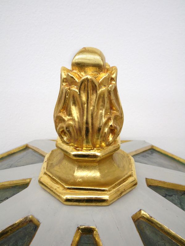 Ausbrüche und abgeriebene Bereiche in der Vergoldung wurden in Polimentvergoldung vergoldet.
