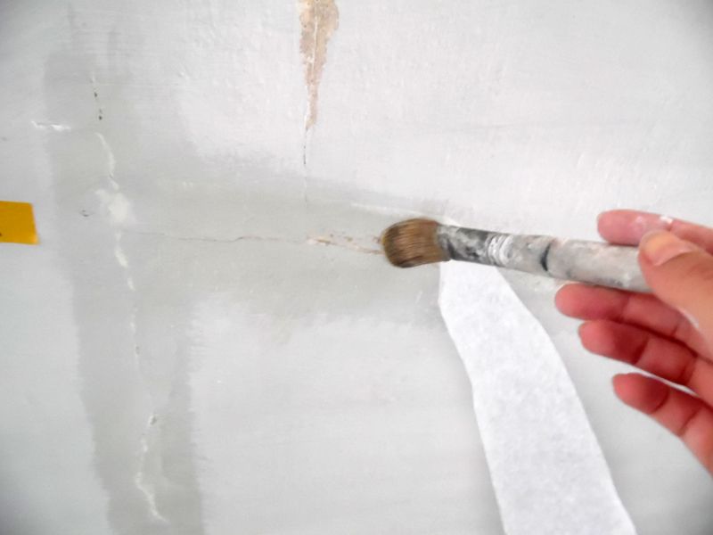 Statische Risse wurden mit einlagiger Japanpapierbeklebung kaschiert. Vorleimung der Rissflanken und Verklebung erfolgten mit Methylhydroxyethylcellulose.