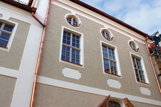 Stuckrestaurierung an der Fassade des Landgerichts Amberg