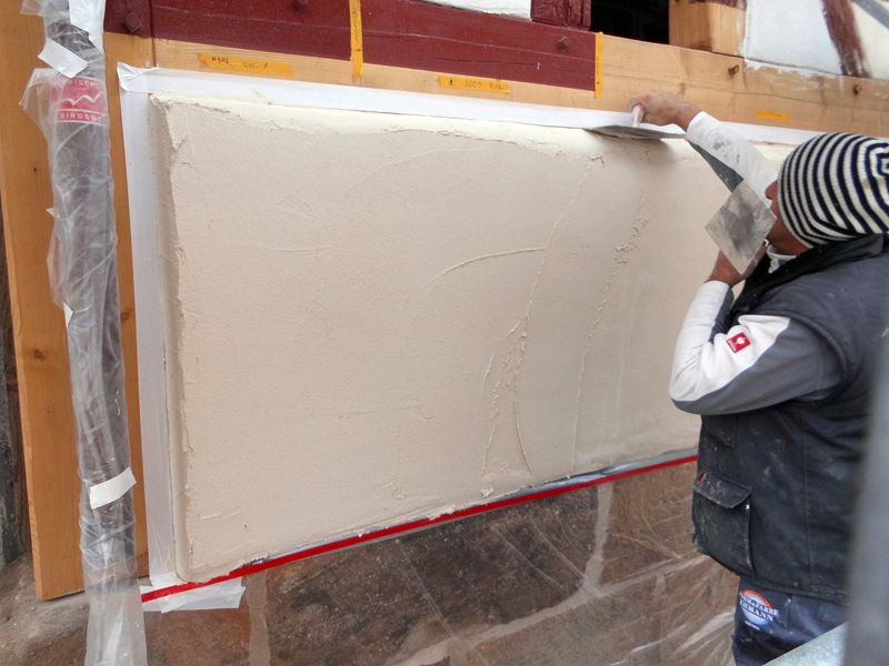 Tiefe Putzfehlstellen wurden mit Kalkputz vorgeputzt und egalisiert.