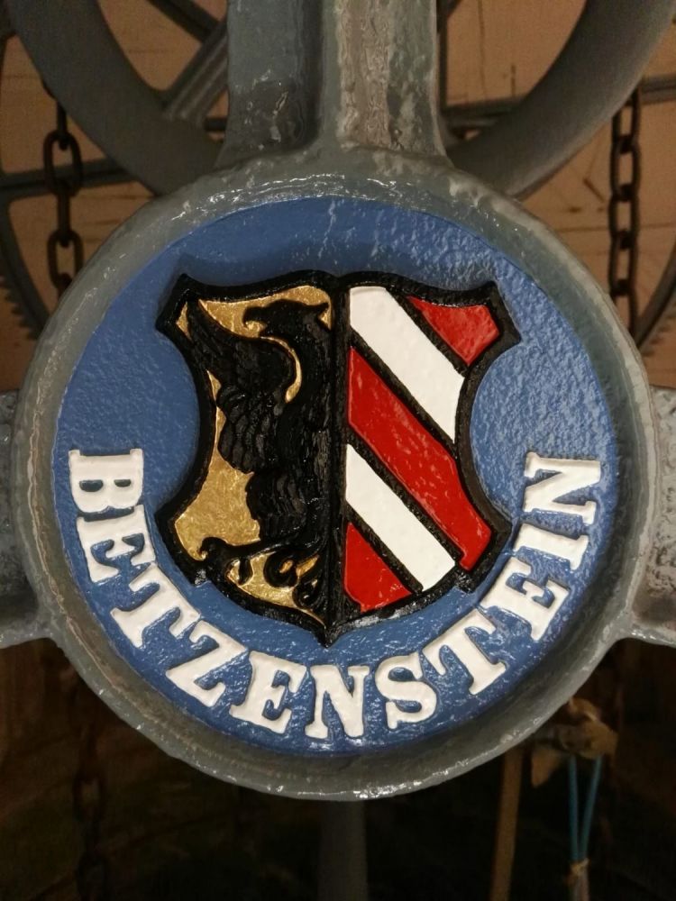 Das Wappen wurde gereinigt und mit Ölfarbe farbig neu gefasst.