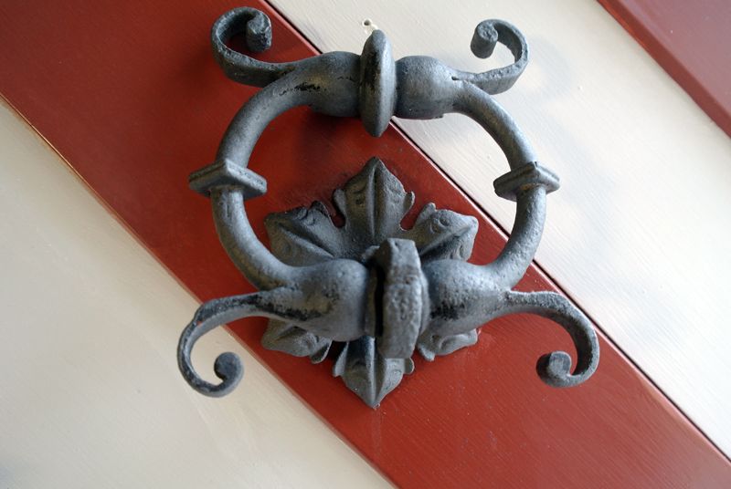 Die alten Beschläge der Eingangstür wurden entrostet, grundiert und neu lackiert.