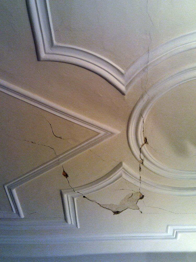 Vor allem die Stuckdecke war von hohlliegenden Putzlagen und Rissen in Mitleidenschaft gezogen.