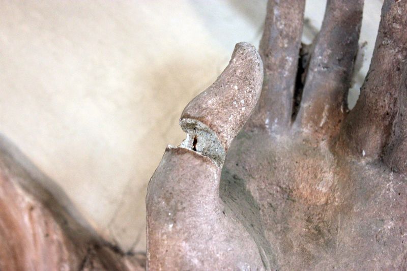 Auch hier wurden durch schlagfreies Bohren entsprechende Zugänge geschaffen. Daraufhin wurden die individuell abgelängten und vom Durchmesser her angepassten Glasfaserstangen mit Epoxidharzmörtel eingesetzt. Anschließend wurden die Bohrungen oberflächengleich und randgenau mit KEIM Universalputz fein wieder verschlossen.