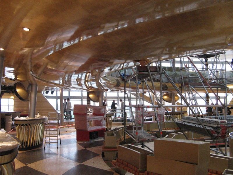 Doch erst ein Besuch auf dieser modernen Entertainerin mit dem Kussmund am Bug zeigt, dass sich wahre Größe nicht nur mit Zahlen beschreiben lässt. Mittelpunkt des Schiffes bildet das von Glas und Blattgold beherrschte Theatrium.