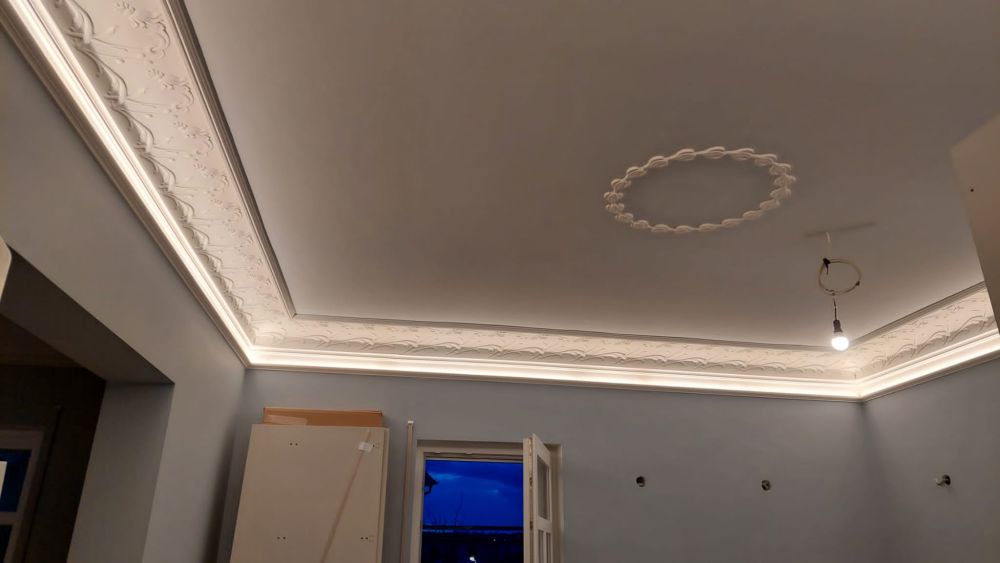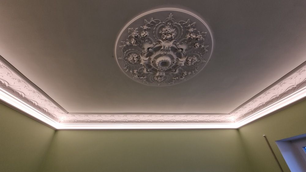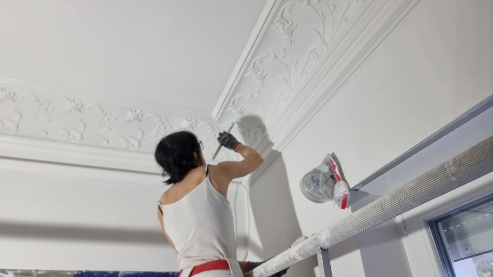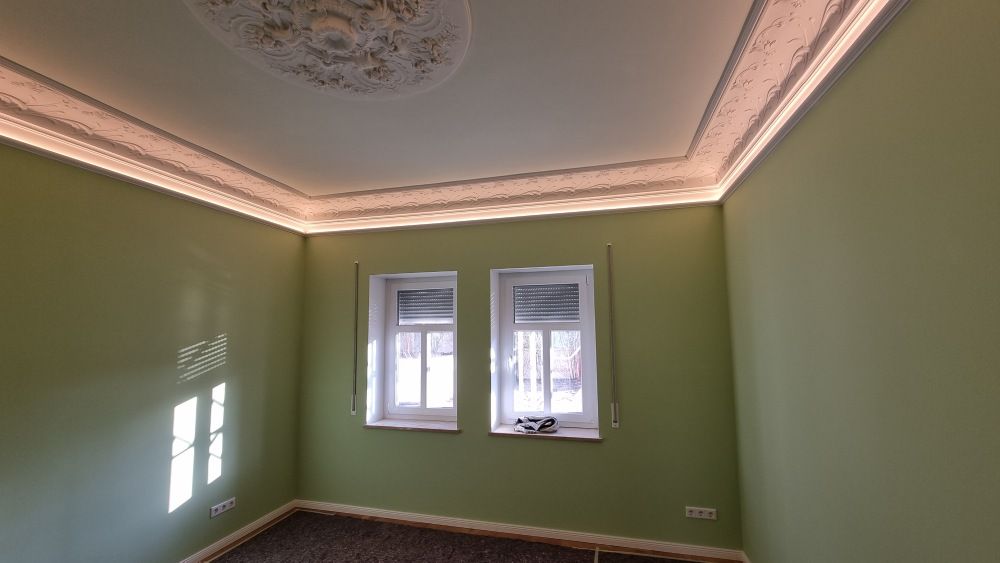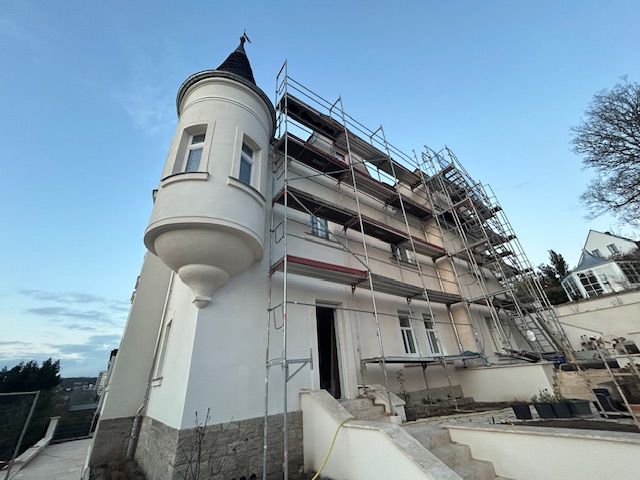 Komplettsanierung | Neustuckierung der Fassade | Anstrich in Reinsilikat | Neustuckierung der Innenräume | gesamter Innenausbau etc.