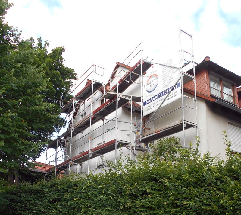 Der schöne Gebäudekomplex der WEG in Burgfarrnbach sollte renoviert werden. Form [&] Farbe Ehmann GmbH übernahm die Dämmung und Renovierung der Fassaden.
